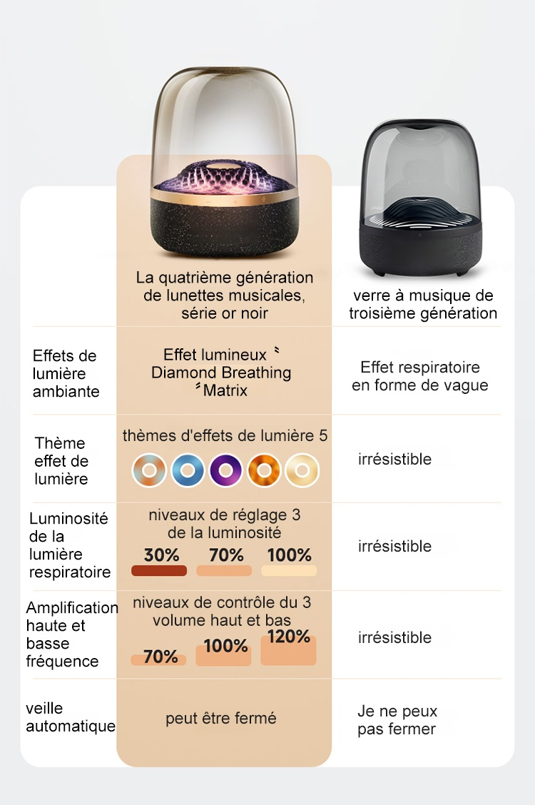Nouvelle enceinte Bluetooth avec éclairage coloré en verre émaillé.